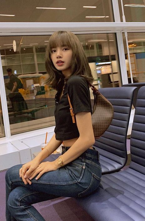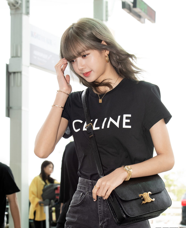 공항에서도 셀린느 트라이엄프 폴코백을 착용한 리사의 모습입니다! 캐주얼한 룩에도 잘어울리죠?