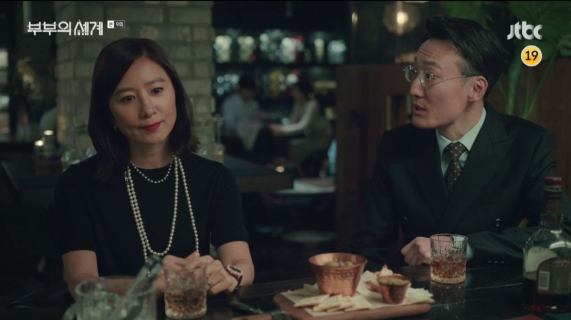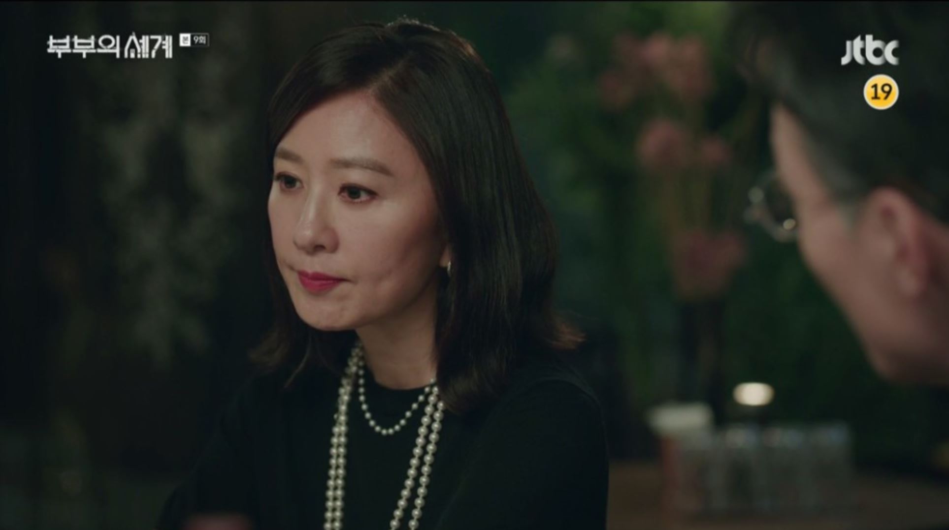 바에서 병원장과 만나 이야기를 나누는 장면에서의 김희애 모습이에요.